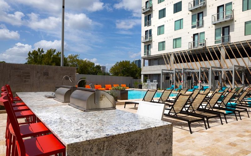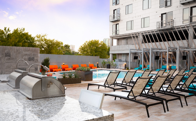 When it comes to apartment amenities, Residences at Saltillo is in a league of its own. These luxury apartments for rent in East Austin, TX place all the Eastside neighborhood’s perks right at your doorstep. Take in breathtaking views of the city skyline from an elegant, elevated poolside vantage point. Join neighbors and put in a rewarding workout in the wellness studio with free group fitness classes. Afterward, reward yourself with a hang-out session in the video game arcade, or challenge someone to a playful game of oversized chess in our entertainment lounge. If you’ve got a canine companion, pamper him or her in our very own pet spa with stainless steel doggie tubs and blow dryers. We offer no breed or weight restrictions with our four-legged residents and provide yappy hours and other pet socials. Take advantage of countless restaurants, spas, salons, and even a Whole Foods, all within our home base – now that’s true convenience! Experience the lifestyle you deserve when you live in one of our apartments in Downtown Austin. Schedule your private tour with us today!
